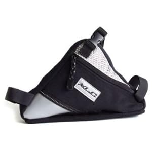 XLC Bicycle Frame Bag Black/Silver. Made of Rugged 450D Material ! Reflective surfaces consist of 3M Scotchlite ! 1 Net/Mesh outside compartment. Rubberised zip fastener lugs. Measures: 24 x 18 x 18 cm. Volume: 1.1 Liter!